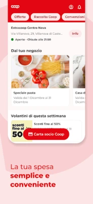 Aplikácia Coop rozširuje vaše výhody aj mimo predajní. Objavte bohatú ponuku exkluzívnych partnerských programov a zliav pre členov, ktoré pokrývajú široké spektrum oblastí od voľného času a kultúry až po wellness a rôzne služby. Vďaka personalizovaným oznámeniam budete vždy informovaní o najnovších akciách a dôležitých správach od vášho družstva Coop, aby ste nikdy nezmeškali žiadnu výhodu. Tieto funkcie sú momentálne dostupné pre členov družstiev: Coop Lombardia, Nova Coop, Coop Liguria, Coop Alleanza 3.0, Coop Reno a Unicoop Tirreno.