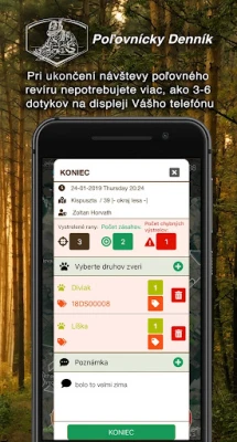 Poľovnícky denník digitalizuje evidenciu činnosti poľovníkov v revíri. Nahradzuje papierové záznamy interaktívnou GPS mapou skutočného poľovného revíru, kde môžete zakresľovať zariadenia a pomenovať územia. Uľahčuje správu revíru a prácu poľovníckym združeniam a spoločnostiam.