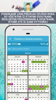 S aplikáciou Sviatky a sviatky získate prehľad o takzvaných premostených dňoch, ktoré inteligentne spájajú sviatky s víkendmi, čím minimalizujete potrebu čerpania dovolenky. Ponúkame vám šikovné návrhy, koľko dovolenkových dní je potrebné na vytvorenie ideálneho predĺženého voľna. Celoročný kalendár prehľadne zobrazuje všetky štátne sviatky, školské prázdniny a premostené dni spolu s odporúčaniami na dovolenky, všetko na jednom mieste. Navyše, aplikácia Sviatky a sviatky vás vopred bezplatne upozorní na blížiace sa sviatky či prázdniny, pričom si sami určíte dobu predstihu upozornenia, alebo túto funkciu jednoducho vypnete, ak ju nepotrebujete.