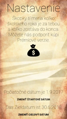 Škopky presne sleduje priebeh školského roka, ukazuje, koľko času už uplynulo a koľko ešte zostáva do zaslúžených prázdnin. Majte vždy prehľad o svojom pokroku a tešte sa na voľné dni.
