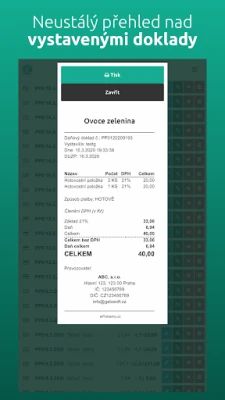 Zaistite si bezstarostné a efektívne riadenie vašich podnikových transakcií s aplikáciou Evidence tržeb. Od 1. novembra 2016 sme pomohli spracovať milióny dokladov s jedinečným fiškálnym kódom, potvrdzujúc tak našu spoľahlivosť a presnosť. Naša platforma vyniká v rýchlosti – priemerné vygenerovanie, zaevidovanie a tlač účtenky trvá len neuveriteľné dve sekundy. S Evidence tržeb získate nielen nástroj na dodržiavanie legislatívy, ale aj spoľahlivého partnera pre zefektívnenie vašej obchodnej činnosti. Prehľadné informácie a návody, ako čo najlepšie využiť všetky funkcie, nájdete v našej rozsiahlej znalostnej báze.