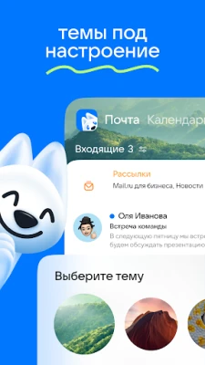„Почта Mail.ru" predstavuje ústredie vašich aktivít. S osobným hlasovým asistentom Marusya získate predpoveď počasia, prehľad úloh a nahlas vám prečíta poznámky či dôležité pripomienky.