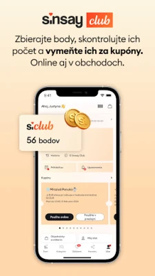 Pre maximálne výhody sa staňte súčasťou vernostného programu Sinsay Club. Zbierajte body za každý váš nákup a premeňte ich na hodnotné zľavové kupóny s významnou úsporou. Ako členovia klubu získate prístup k exkluzívnym ponukám a budete prví, kto sa dozvie o najlepších príležitostiach. Celý proces nákupu v aplikácii Sinsay je navrhnutý tak, aby bol maximálne intuitívny a rýchly. Sledujte stav svojich objednávok, spravujte obľúbené produkty, využívajte pohodlné vrátenie tovaru bez nutnosti dokladu a dostávajte notifikácie o nových kolekciách či špeciálnych akciách, všetko prehľadne na jednom mieste.